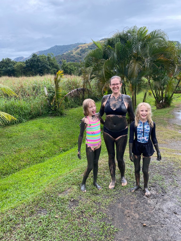 We finally made it to where we started and were greeted with “You didn’t take an umbrella?!” Honestly, it was raining so hard I’m not sure an umbrella would have helped much. We were drenched but the girls were laughing and (luckily) found the whole experience to be fun. I also knew our next stop was the mud spa, so I wasn’t too worried. I would have loved to see more of the garden, but it just wasn’t in the cards (naturally, on our flight back through Fiji two weeks later it was a beautiful, sunny day).